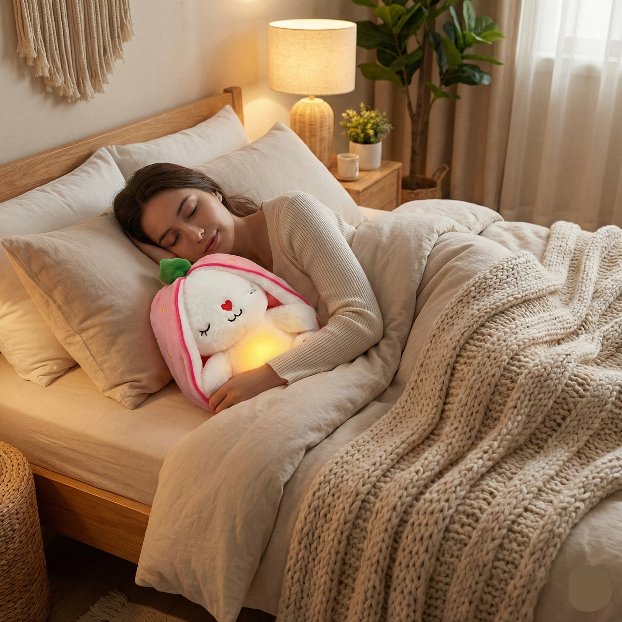 Nuestro conejito no es solo un peluche: es un compañero de noche pensado para abrazarte, ayudarte a desconectar del día y hacer que la hora de dormir sea más tranquila, tanto para peques como para adultos.